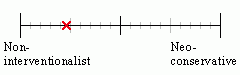 On the left side are pacifists and anti-war activists. On the right side are those who want a strong military that intervenes around the world.
